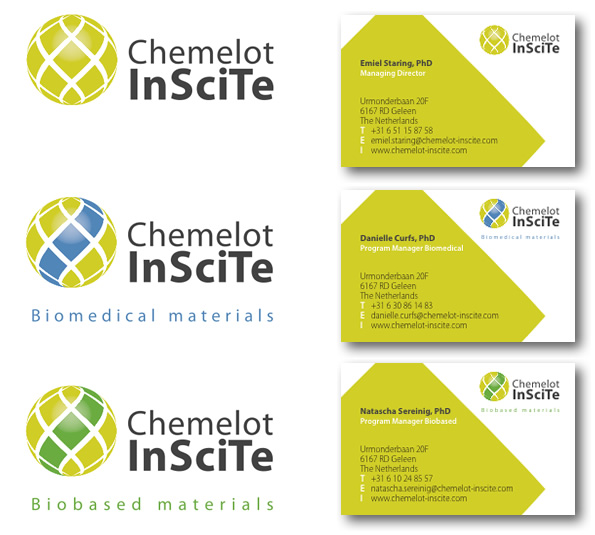 Bright Design kreeg de eer om de hele huisstijl te ontwerpen. Het logo was de eerste uitdaging. Hier is uitgegaan van een dennenappel. Een vrucht met schubben waarachter de zaden liggen: De dennenappel staat voor Chemelot InsciTe ofwel het huis, de schubben staan voor de werkplekken en de zaden die erachter liggen voor de verschillende ontwikkelingen / producten / onderzoeken. Voor een meer wereldser karakter heeft de dennenappel een bolvorm gekregen.