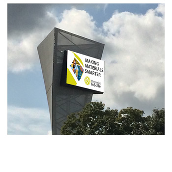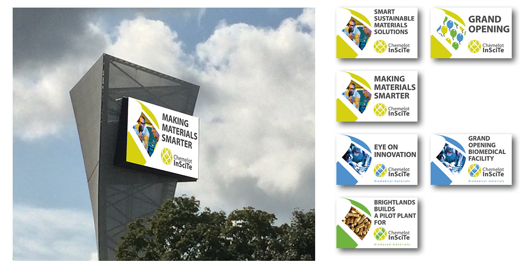 De opening van Chemelot InsciTe werd groots kenbaar gemaakt op de ledborden op de campus maar ook op grote hoogte op de zuil langs de A2.