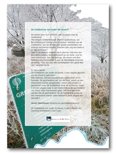 Tijdens dat het boek De Grebbelinie van onder tot boven in ontwikkeling was bij Bright Design werd deze brochure ontwikkeld om de doelgroep alvast te informeren. Ook kon men via deze brochure het boek al bestellen. Met korting natuurlijk.