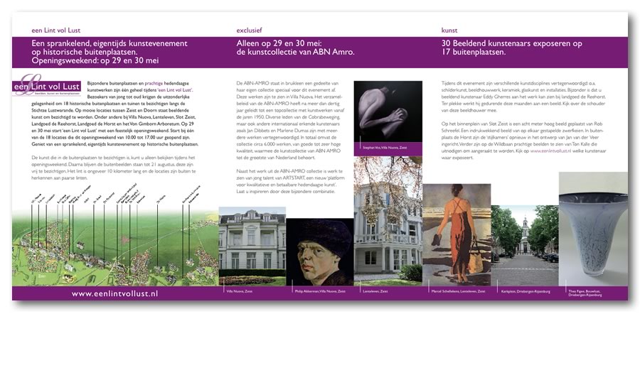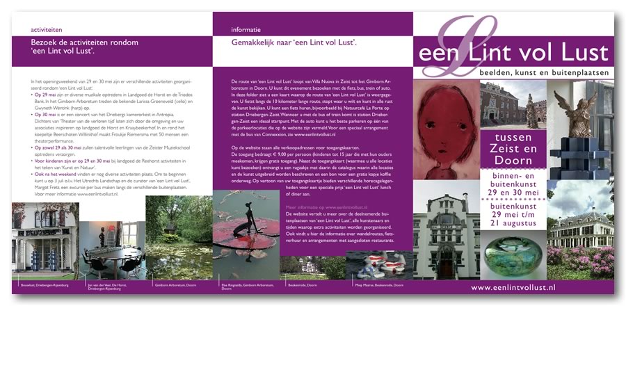 Bijzondere buitenplaatsen werden samengebracht met prachtige hedendaagse kunstwerken tijdens ‘een Lint vol Lust’. Bezoekers kregen de uitzonderlijke gelegenheid om ruim 15 historische buitenplaatsen en de tuinen te bezichtigen langs de Stichtse Lustwarande. Op 29 mei 2010 startte ‘een Lint vol Lust’ met een feestelijk openingsweekend en kon hoogwaardige kunst bezichtigd worden op prachtige locaties tussen Zeist en Doorn.
