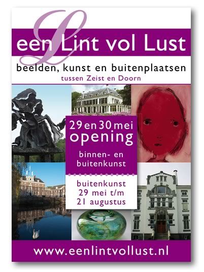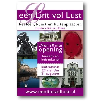 Bijzondere buitenplaatsen en prachtige hedendaagse kunstwerken waren één geheel tijdens ‘een Lint vol Lust’. Bezoekers van jong tot oud kregen de uitzonderlijke gelegenheid om 18 historische buitenplaatsen en tuinen te bezichtigen in combinatie met hoogwaardige kunst langs de Stichtse Lustwarande. Om dit te communiceren verschenen een week voor het evenement overal driehoeksborden met deze A0-posters langs de weg. De opkomst was groot...