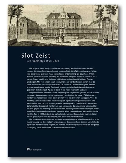 26 juni 2009 presenteerde uitgeverij De Buitenplaats (een imprint van uitgeverij Kleine Geschiedenis van de Heuvelrug) het boek ‘Slot Zeist, Een Vorstelijk stuk Goet’ van de hand van Catharina L. van