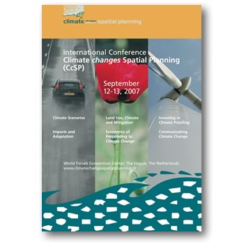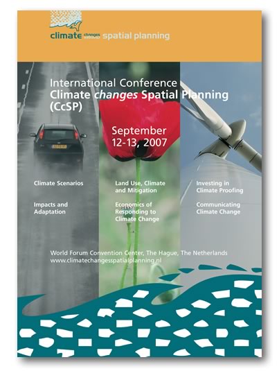 Voor International Conference "Climate changes Spatial Planning (CcSP)" van Klimaat voor Ruimte moesten verschillende uitingen gemaakt worden. Onder andere deze poster. Aan de hand hiervan werden ook weer folders en flyers ontwikkeld.