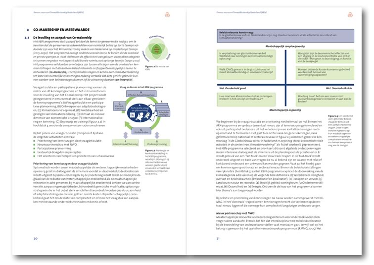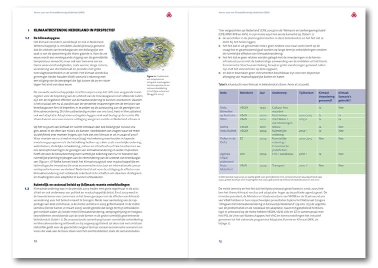 'Kunnen jullie snel een rapport tussendoor ontwerpen, vormgeven en laten drukken?' 'Natuurlijk!' zeiden wij. Mederwerkers van Klimaat voor Ruimte werken ook voor aanverwante onderzoekinstellingen en kwamen met de vraag om voor het Kennisprogramma KlimaatBestendig Nederland snel een rapport van bijna 100 pagina's te maken. Ervaren als we zijn lag dit rapport binnen 1,5 week "op de plank".