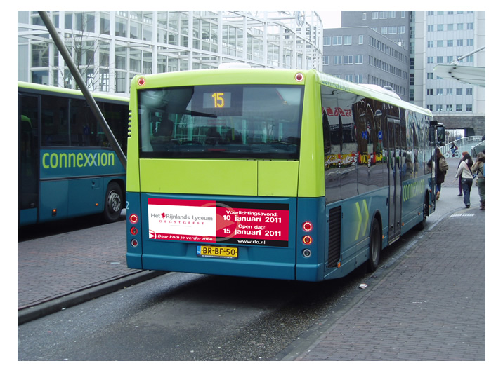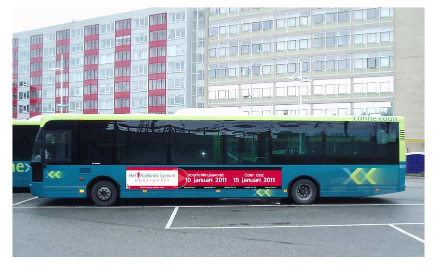 Het Rijnlands Lyceum schuwt geen enkel communicatiemiddel, zoals busreclame, om bekendheid te geven aan de informatieavonden en open dagen in januari. Als dit niet opvalt…