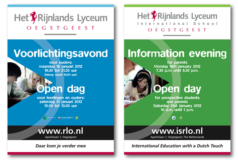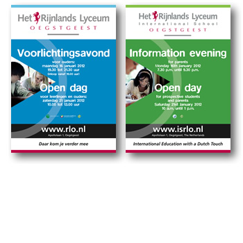 Elk jaar in januari starten de informatiedagen en open dagen voor de nieuwe leerlingen die van de basisscholen doorstromen naar het voortgezet onderwijs. Het Rijnlands Lyceum laat zich dan overal zien met de door Bright Design ontworpen posters.