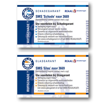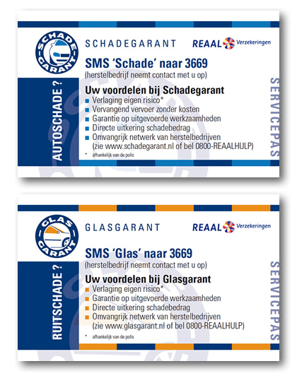Schadegarant raakt steeds meer ingeburgerd en vroeg Bright Design een servicepas te ontwikkelen met servicenummer en voordeelgegevens die wordt bijgevoegd bij het schadeformulier.