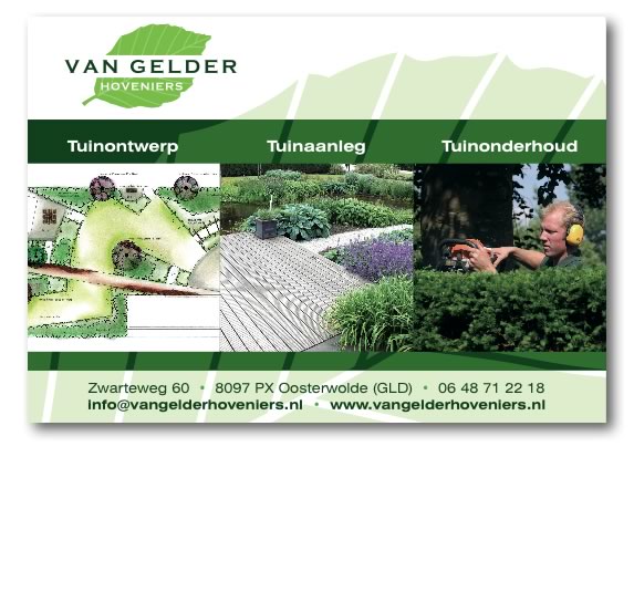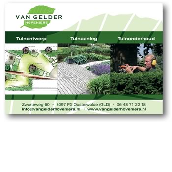 Van tijd tot tijd zet Van Gelder Hoveniers een advertenties in regionale bladen en magazines om hun inmiddels verworven naamsbekendheid te waarborgen. Bright Design maakt ze.