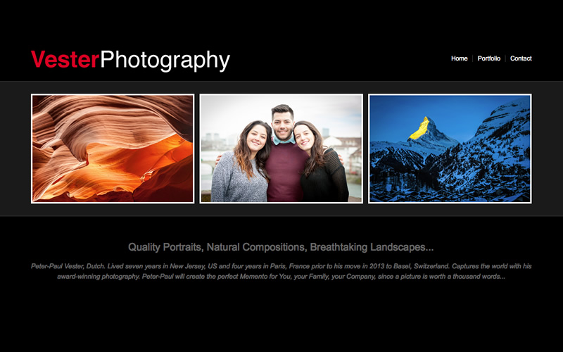 Geboren, getogen en afgestudeerd in Nederland, Peter-Paul Vester beeindigde in 2002 zijn juridische cariere om met zijn gezin naar de USA te kunnen verhuizen. Gedurende de volgende 7 jaar werd zijn passie voor fotografie digital. Zijn antiek import bedrijf 'Living Antiques' (waarvoor BrightDesign ook de totale huistijl verzorgde) en later de 'Somerset Hills YMCA, NJ', waar Peter-Paul als Webmaster werkzaam was, profiteerden van zijn gave mensen en dingen op originele manier digitaal vast te leggen. Oog voor detail (less is more!) en de manier waarop hij alledaagse situaties vanuit een verrassend andere hoek en toch naturel vastlegt, maakt zijn werk aantrekkelijk. Zijn grote prints op canvas zijn indrukwekkend en decoreren inmiddels vele interieurs.